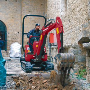 La solución de YANMAR para responder a sus necesidades en entornos de trabajo estrechos, jardinería o renovación de interiores. Máquinas de radio de giro trasero reducido «SV» o de giro cero «ViO»