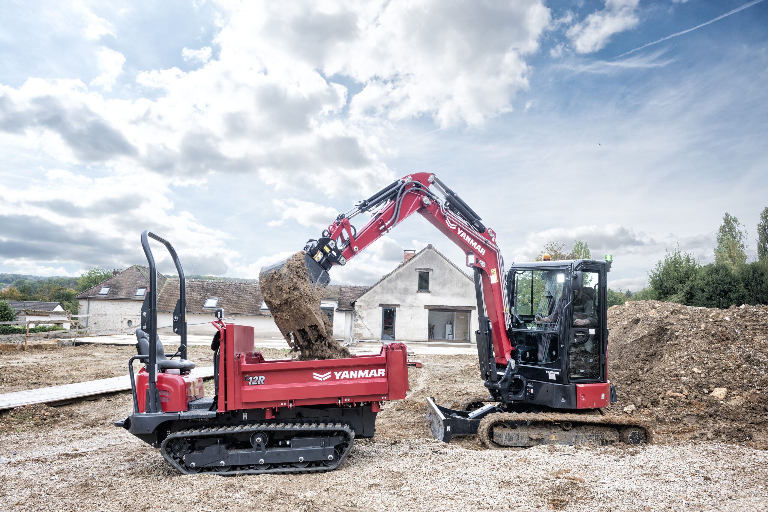 El dúmper C12R-C forma parte de la espectacular gama Yanmar de máquinas de construcción compactas, y tiene una potencia muy superior a su peso, con una capacidad de carga de 990 kg en una máquina que solo tiene 960 mm de ancho y 2650 mm de largo. Eso significa que necesitará menos trayectos para completar su trabajo.