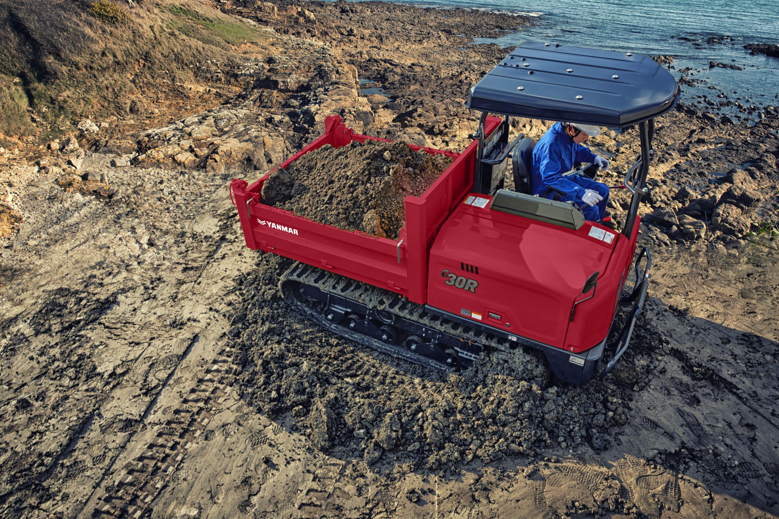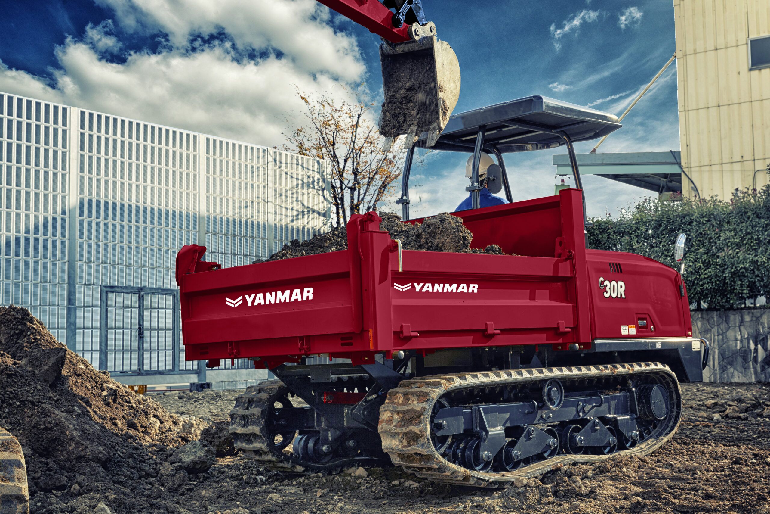 El Yanmar C30R-3 es compacto, pero tiene mucha potencia. El dúmper C30R-3 de descarga por tres lados ofrece una carga útil de 2500 kg en un ancho de solo 1550 mm, lo que le permite trabajar incluso en los espacios de trabajo más reducidos. Los guardabarros protegen el material para que no afecte a los componentes hidráulicos y la palanca de control es muy precisa.
